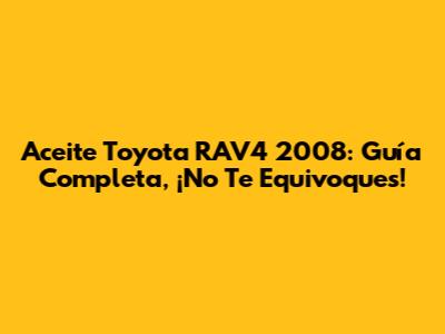 Aceite Toyota RAV4 2008: Guía Completa