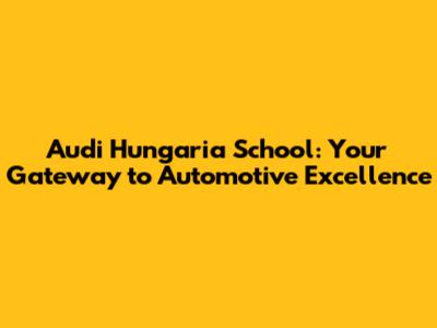 Audi Hungaria School: Your Gateway To Automotive Excellence