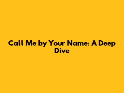 Call Me By Your Name: A Deep Dive