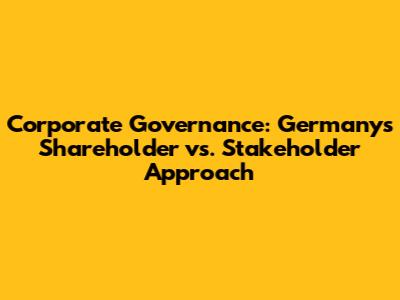 Corporate Governance: Germany's Shareholder Vs. Stakeholder Approach