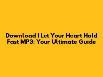 Hey music lovers! Are you on the hunt for the MP3 download of "I Let Your Heart Hold Fast"? You've landed in the right spot, guys. This track has been making waves, and it's no surprise why. Its powerful message and unforgettable melody have captured the hearts of many. Whether you've heard it on the radio, a friend's playlist, or caught a snippet online, you're probably itching to get your hands on a high-quality MP3 so you can listen to it anytime, anywhere. We're here to guide you through the best and safest ways to download "I Let Your Heart Hold Fast" MP3, ensuring you get the best audio quality without any hassle. Let's dive into how you can add this gem to your music library!