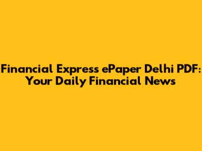 Financial Express EPaper Delhi PDF: Your Daily Financial News