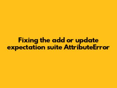 add_or_update_expectation_suitemethod might not be available in the version of Great Expectations you're using. This method was introduced in a specific version, and if you're using an older version, the method won't be there. If you're using an older version of Great Expectations, you won't have theadd_or_update_expectation_suitemethod. Upgrading your GX installation is often the quickest fix. - Incorrect