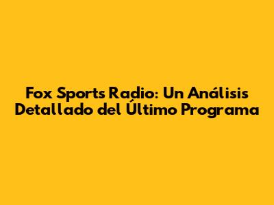 ¡Hola a todos los fanáticos del deporte! Hoy nos sumergimos en el universo de Fox Sports Radio, específicamente en su último programa. Prepárense para un análisis exhaustivo, lleno de detalles y perspectivas que seguramente les encantarán. ¿Están listos para revivir los mejores momentos, las discusiones más acaloradas y los análisis más profundos? ¡Vamos a ello!