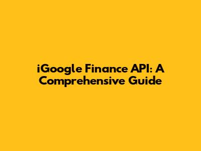 Hey guys! Ever heard of the iGoogle Finance API? If you're into finance and love tinkering with data, this is something you might find super interesting. Even though Google has sunset iGoogle, understanding the API that powered its finance features can still give you insights into how financial data was accessed and used back in the day. So, let's dive in and explore what the iGoogle Finance API was all about!