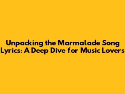 Unpacking the "Marmalade" Song Lyrics: A Deep Dive for Music Lovers
