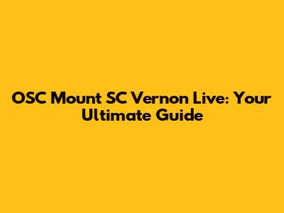 OSC Mount SC Vernon Live: Your Ultimate Guide