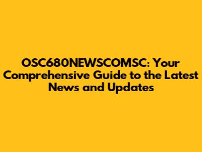 OSC680NEWSCOMSC: Your Guide To The Latest News & Updates