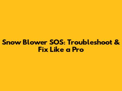 Snow Blower SOS: Troubleshoot & Fix Like A Pro