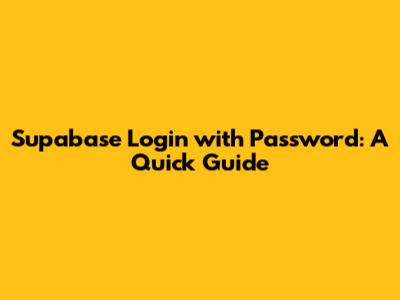 Supabase Login With Password: A Quick Guide