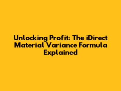 Unlocking Profit: The IDirect Material Variance Formula Explained