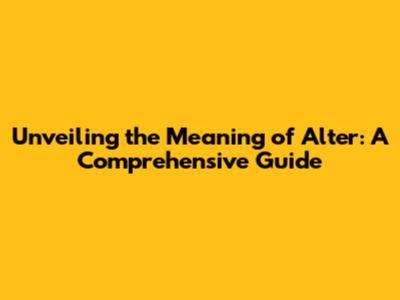 Unveiling The Meaning Of 'Alter': A Comprehensive Guide